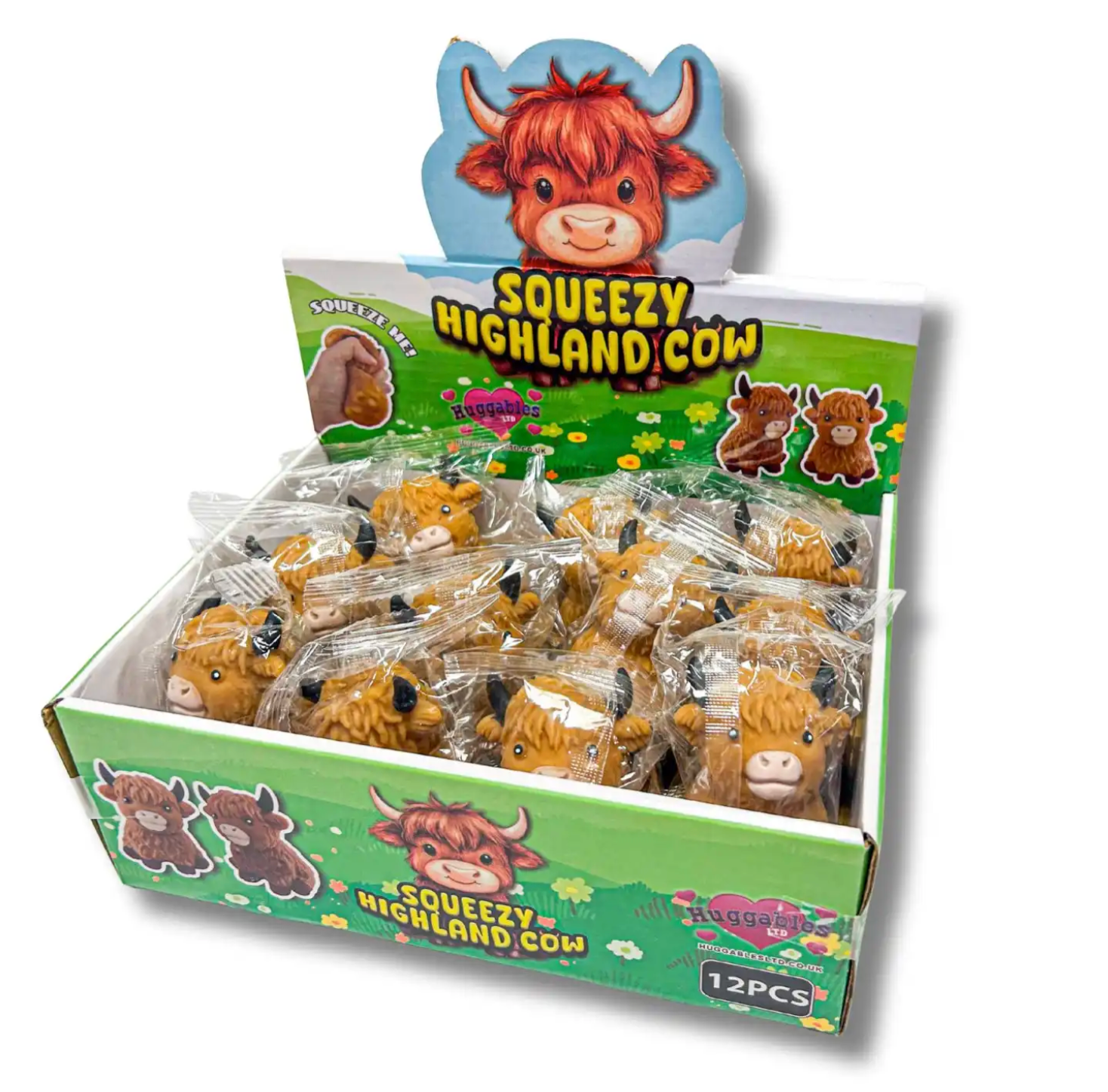 Adorable 8cm Highland cow squeezy toy featuring the iconic long horns and shaggy coat of this beloved Scottish breed. Perfect for sensory play, stress relief, and tactile stimulation. Soft, squeezable design fits comfortably in small hands. Ideal for children and adults seeking calming fidget toys. Great for collections, party favours, or therapeutic use. Durable construction withstands repeated squeezing and play.
