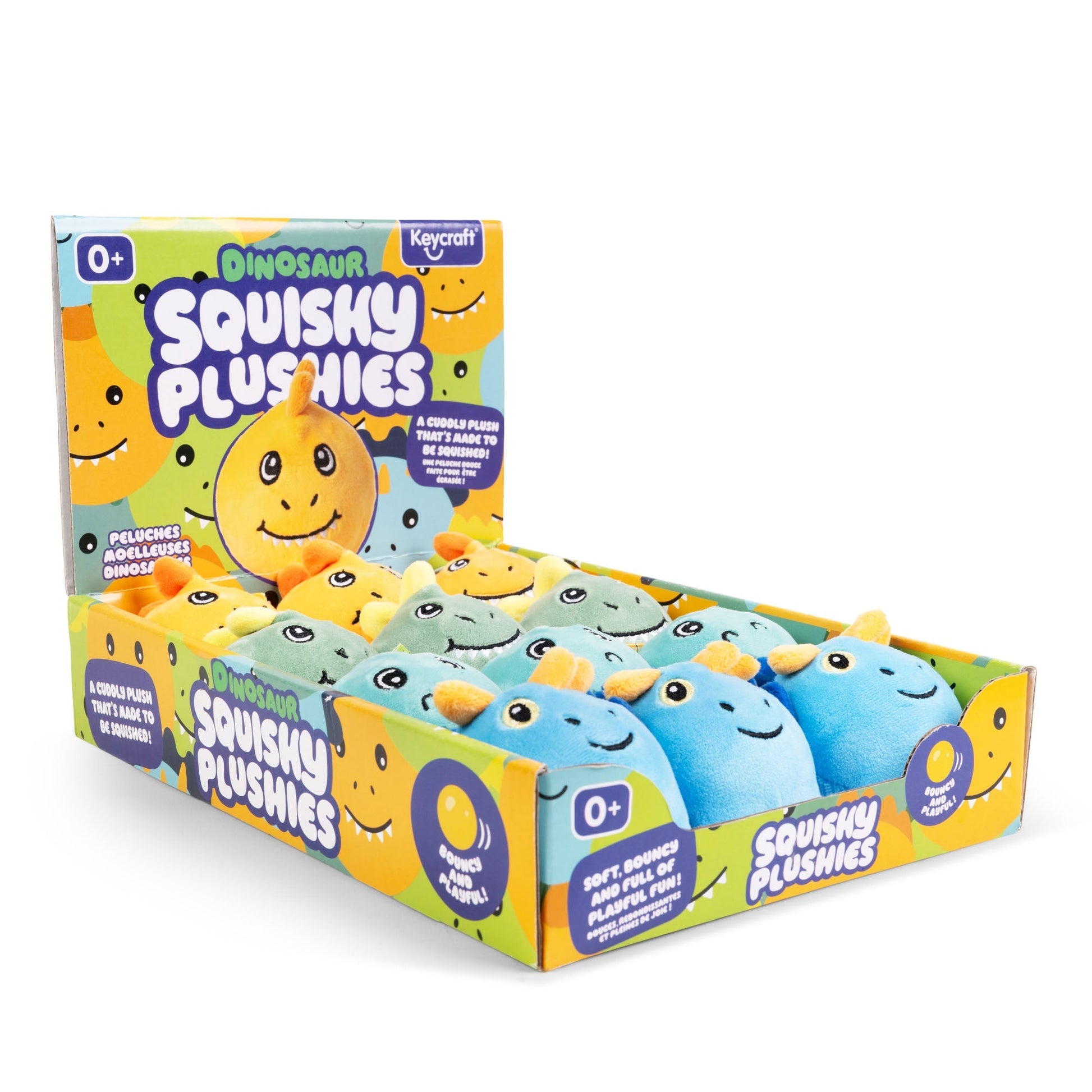 This charming collection of Dinosaur Squishy Plushies Sensory Toys, features adorable smiley faces, guaranteed to delight young visitors. Four colorful dinosaur designs, bring a collectable element that your customers will love. These adorable squishy dinosaur sensory toys are small enough to merchandise near your point of sale, and will arrive in an eye-catching counter display box. These irresistible sensory toys will drive impulse purchases and bring a smile to your customers faces!